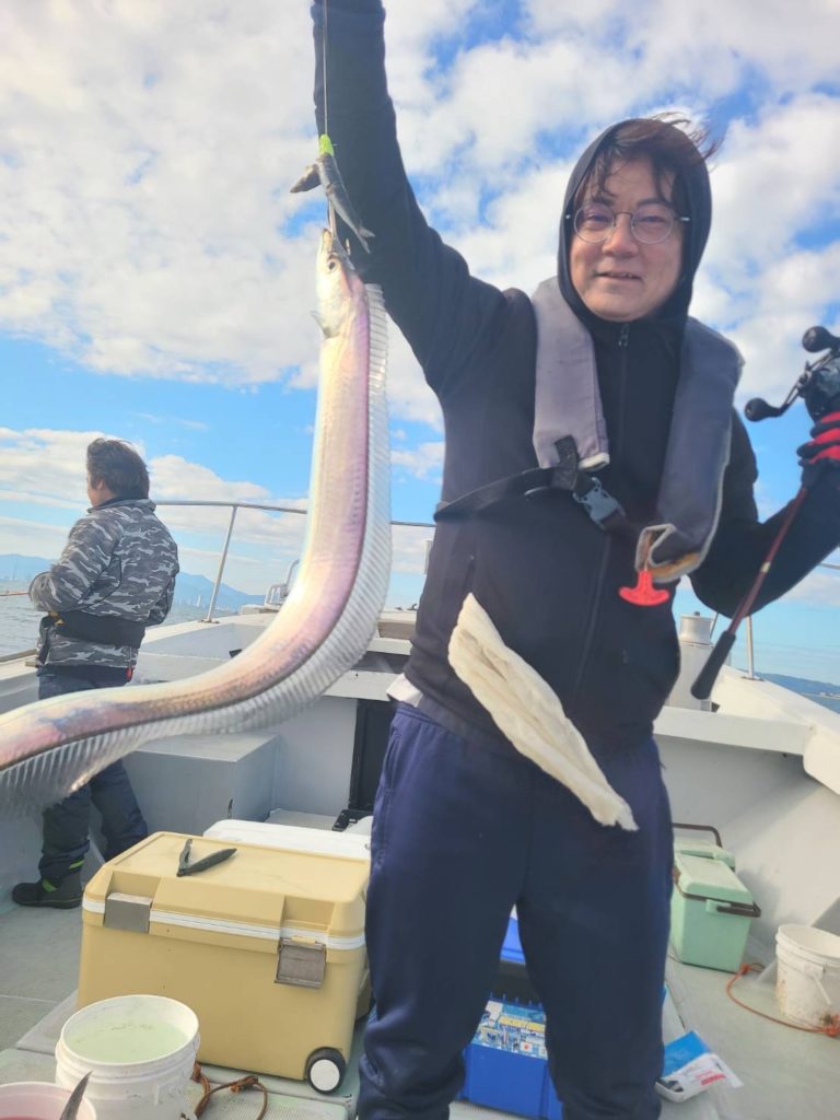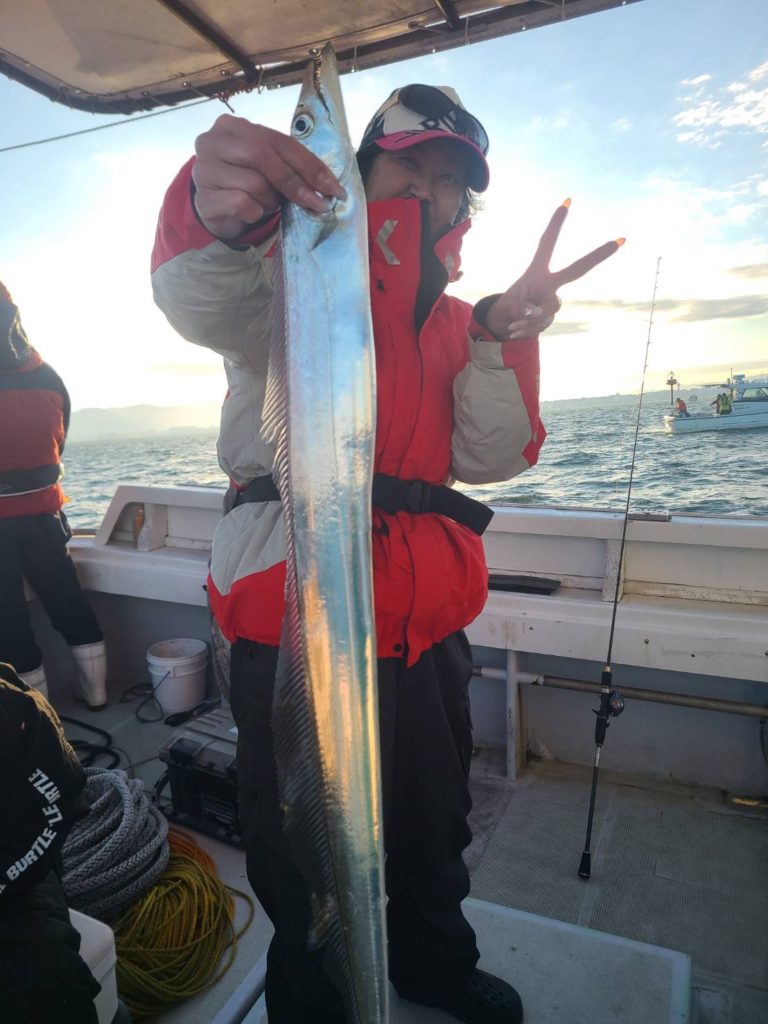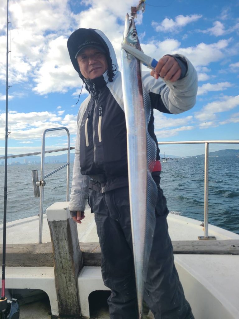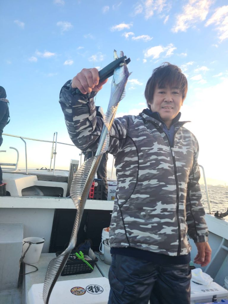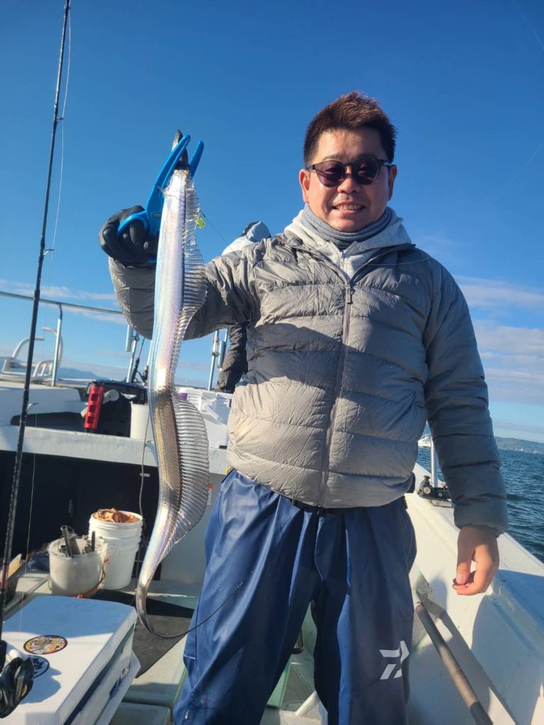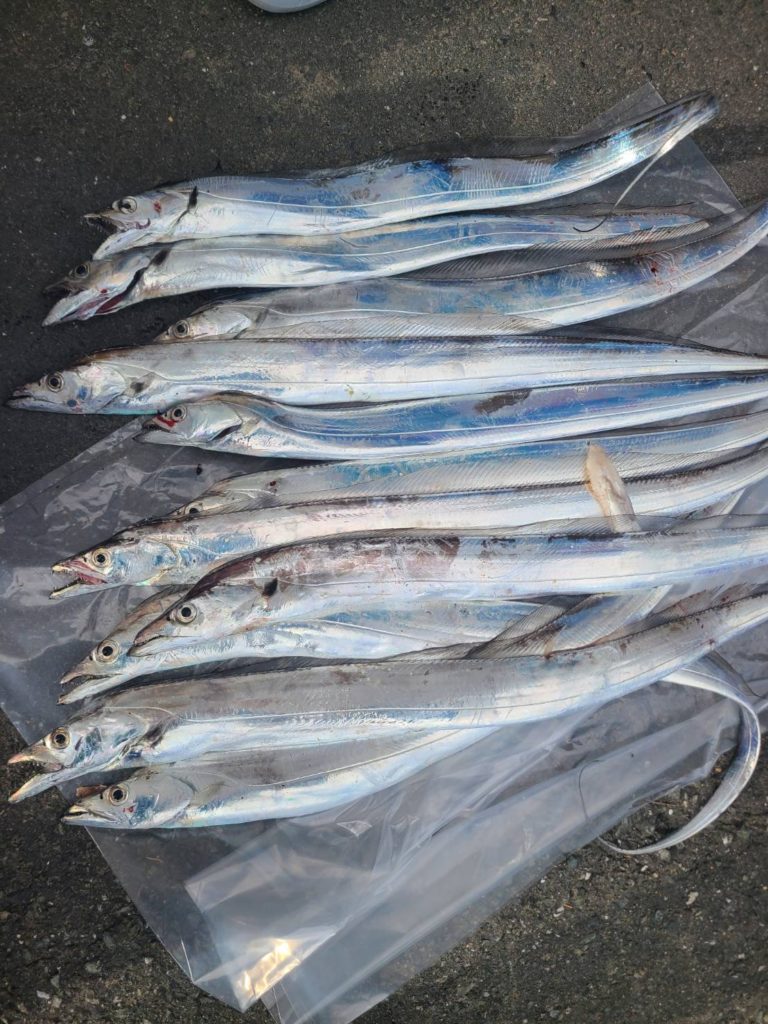 太刀魚 令和7年11月30日 釣果 2025/12/01 鯛ラバ予定でしたが沖は時化予報のため太刀魚に行ってきました。前回より数減って多い人で11本でした。小さめもまじりますが、脂のって美味しいですね😋半日ありがとうございました。